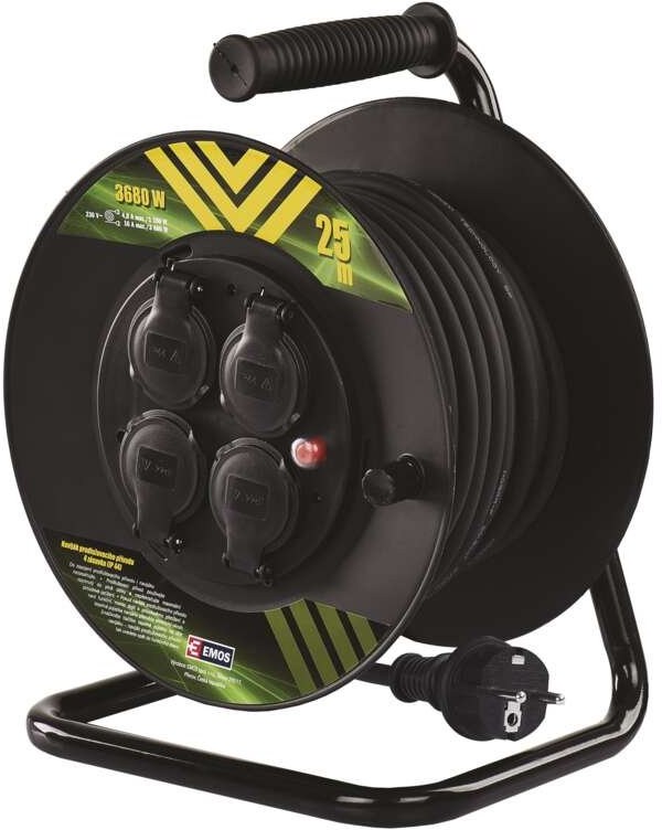 Emos Gumový predlžovací kábel na bubne, 4 zásuvky, čierny, 25 m