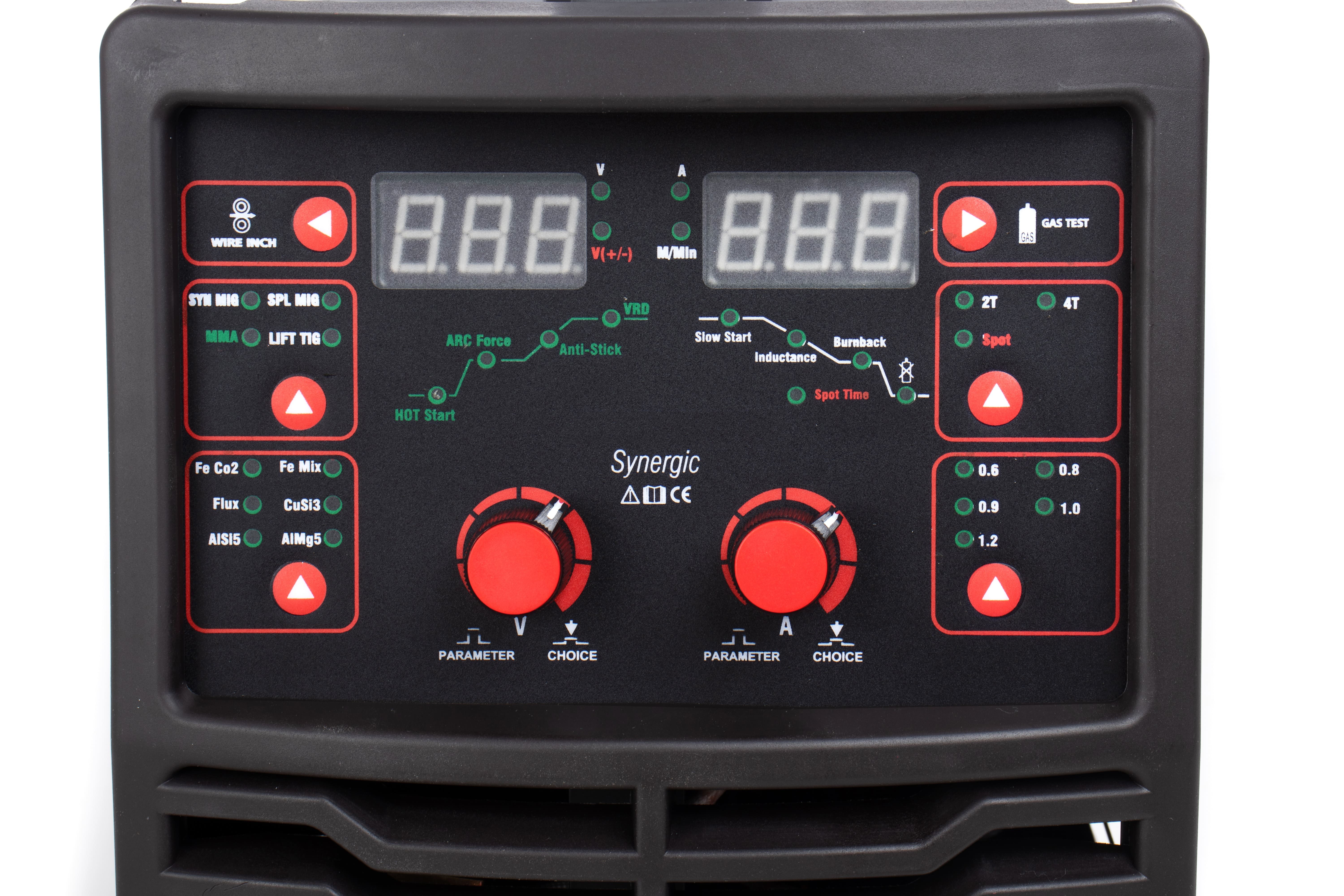 EvoTech MultiSyng200 je navrhnutá práve s cieľom podporiť zváranie na vysokej úrovni, aj keď ešte nemáte skúsenosťi.Vďaka Synergickým programom (pre oceľ s Co2,oceľ MIX Ar+Co2, hlinník ALSi5,AlMg5 a dokonca pre "spájkovanie pozinkovaných plechov ,zliatin s drôtom CuSi3,Flux-zváranie drôtom bez plynu) je počiatočné nastavenie naozaj hračkou, jednoducho zvolíte materiál/ochranný plyn,priemer drôtu a ste pripravený zvárať.