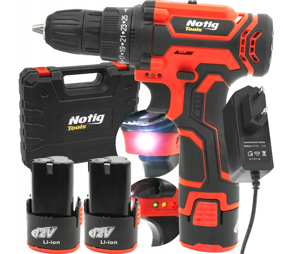 NOTIG-Aku Vŕtačka 12V 2xaku Li-ionSkladom39 €/ ks31,71 € bez DPH