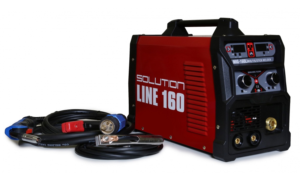 Solution LINE 160 je multifunkčný invertor, ktorý zvára tromi zváracími metódami a to: metódou MMA - elektródou, metódou MIG/MAG- COčkom (s plynom alebo bez plynu - trubičkovým drôtom a metódou TIG - wolfrámovou elektródou. Na prednom digitálnom panely možnosť nastaviť: metódu zvárania, Ampére, Volty, posuv drôtu. Je vybavený eurokoncovkou a kvalitným ventilátorom, ktorý zabezpečuje dobré chladenie stroja. Ani pri veľkom zaťažení sa stroj nepriehrieva. Možnosť použitia 5kg cievky.